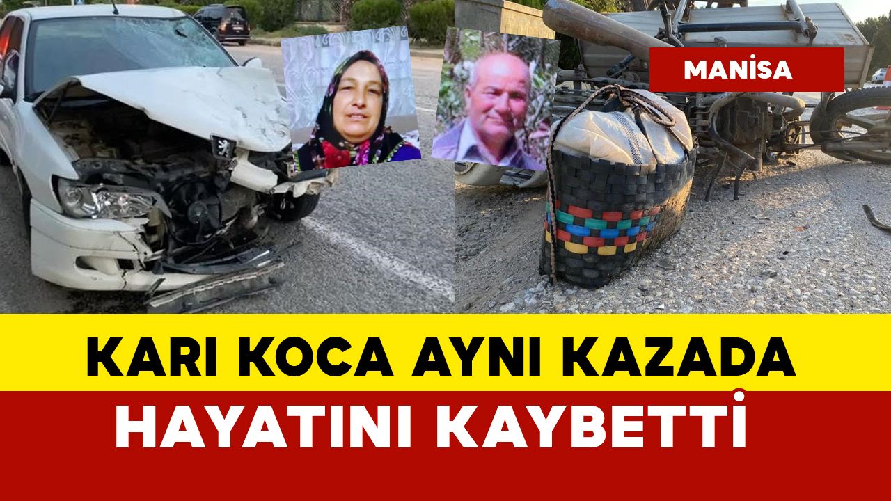 Alaşehir-Kula karayolu Baklacı Mahallesi mevkiinde saat 05.30 sıralarında meydana gelen kazada edinilen bilgiye göre, Davut Eroğlu (62) idaresindeki 45 KA 6541 plakalı sepetli motosiklet ile Kula istikametine seyir halindeyken, aynı yönde ilerleyen Mehmet Akdağ (62) yönetimindeki Peugeot marka 45 KA 6016 plakalı otomobil, sepetli motosiklete arkadan çarptı. Çarpışmanın şiddetiyle yola savrulan motosiklet sürücüsü Davut Eroğlu ile arkasında bulunan eşi Ayşe Eroğlu (55) ağır yaralandı. Olay yerine gelen sağlık ekipleri tarafından Alaşehir Devlet Hastanesi'ne kaldırılan Eroğlu çifti, burada yapılan tüm müdahalelere rağmen kurtarılamadı. Eroğlu çiftinin 2 çocuğu olduğu öğrenildi.
