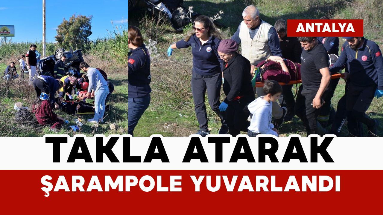 Kaza, Serik ilçesi D400 karayolu Kayaburnu kavşağında meydana geldi. Edinilen bilgiye göre, Hakan K. idaresindeki 07 ADM 27 plakalı otomobil, sürücüsünün direksiyon hakimiyetini kaybetmesi sonucu şarampole yuvarlanıp takla attı. Kazada araç içinde bulunan aynı aileden sürücü Hakan K., eşi Mehtap K. ve 11 yaşındaki oğlu K.K. yaralandı. Vatandaşlar ihbarı üzerine olay yerine sağlık, itfaiye ve polis ekipleri sevk edildi.