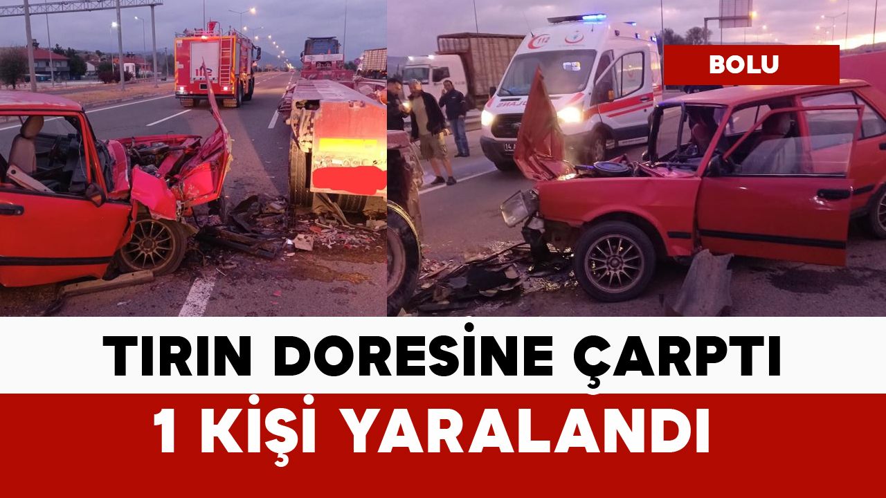 Kaza, Yeniçağa ilçesi D-100 kara yolu Doğancı köyü mevkiinde meydana geldi. Edinilen bilgiye göre, İstanbul istikametinde seyreden İ.Y. idaresindeki 07 KH 554 plakalı Fiat Tofaş marka otomobil, aynı yönde ilerleyen 33 AJP 662 plakalı tırın dorsesine çarptı. Çarpışmanın etkisiyle otomobil sürücüsü İ.Y. yaralandı. Kazayı gören vatandaşların ihbarı üzerine olay yerine sağlık ve polis ekipleri sevk edildi. Yaralanan otomobil sürücüsü İ.Y., sağlık ekiplerinin olay yerindeki ilk müdahalesinin ardından hastaneye kaldırıldı. Kaza sebebiyle otomobilde büyük çapta hasar meydana geldi.