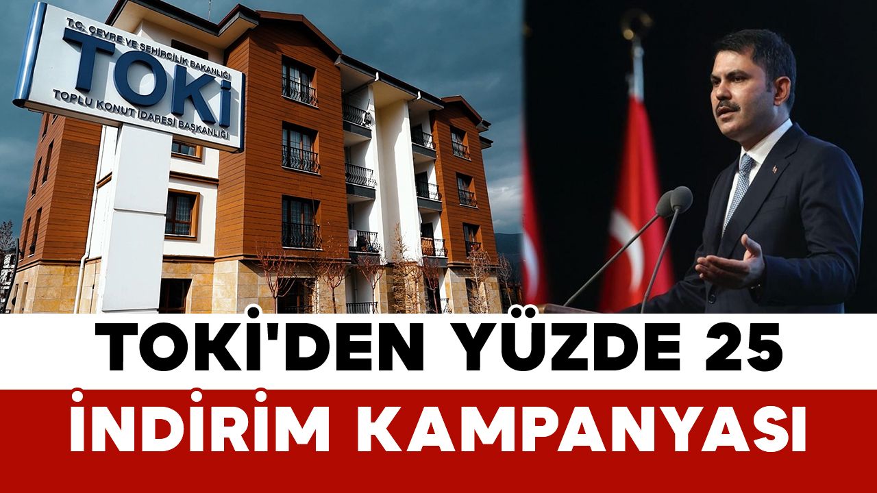 Toplu Konut İdaresi Başkanlığı (TOKİ), borcunu erkenden kapatmak isteyen vatandaşlara yönelik yeni bir indirim kampanyası başlatıyor. Çevre, Şehircilik ve İklim Değişikliği Bakanı Murat Kurum'un kamuoyuna duyurduğu kampanya kapsamında, peşin ödeme yapanlara borçlarının yüzde 25'i oranında indirim uygulanacak.