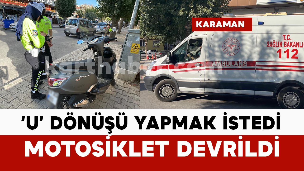 Kaza, ikindi saatlerinde Kazım Karabekir Paşa Mahallesi Gazi Osmanpaşa Caddesi üzerinde meydana geldi. Edinilen bilgiye göre, 70 A*G 0*5 plakalı motosiklet sürücüsü İ.H.Ş., cadde üzerinde ‘U’ dönüşü yapmak isteyen K.S. idaresindeki 42 JC 296 plakalı Peugeot marka hafif ticari araca çarpmamak için manevra yaptı. Bu esnada kontrolden çıkan motosiklet devrildi. Kazada motosiklet sürücüsü yaralanırken, ihbar üzerine adrese sağlık ve polis ekibi sevk edildi. Kazada yaralanan motosiklet sürücüsü ambulansla Karaman Eğitim ve Araştırma Hastanesi’ne kaldırılarak tedavi altına alındı. Kazayla ilgili tahkikat başlatıldı.