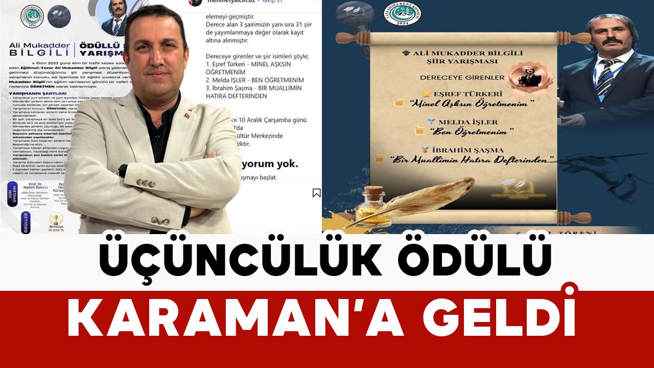 Yarışmanın değerlendirme kurulunda; Niğde Ömer Halisdemir Üniversitesi Türk Dili ve Edebiyatı Bölümünden Prof. Dr. Nedim Bakırcı, Hatay Mustafa Kemal Üniversitesi Türk Dili ve Edebiyatı Bölümünden Doç. Dr. Hüseyin Kürşat Türkan ile alanında uzman şairler yer aldı. Jürinin titiz değerlendirmesi sonucunda üçüncülük ödülü Karaman’a geldi.