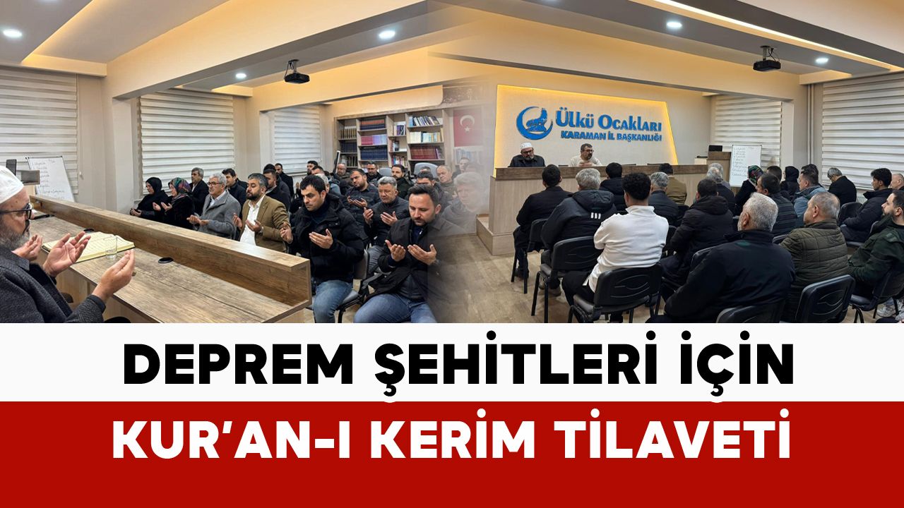 Tüm Türkiye’nin yüreğinde derin yaralar açan deprem felaketinde vefat eden aziz vatandaşlar dualarla yâd edilirken, programda Kur’an-ı Kerim okunarak deprem şehitleri için rahmet niyazında bulunuldu. Ülkü Ocakları Karaman İl Başkanlığı tarafından yapılan açıklamada, asrın felaketinde hayatını kaybeden tüm vatandaşların rahmet, minnet ve dualarla anıldığı belirtilerek, kederli ailelere ve aziz millete bir kez daha sabır ve başsağlığı dilekleri iletildi.