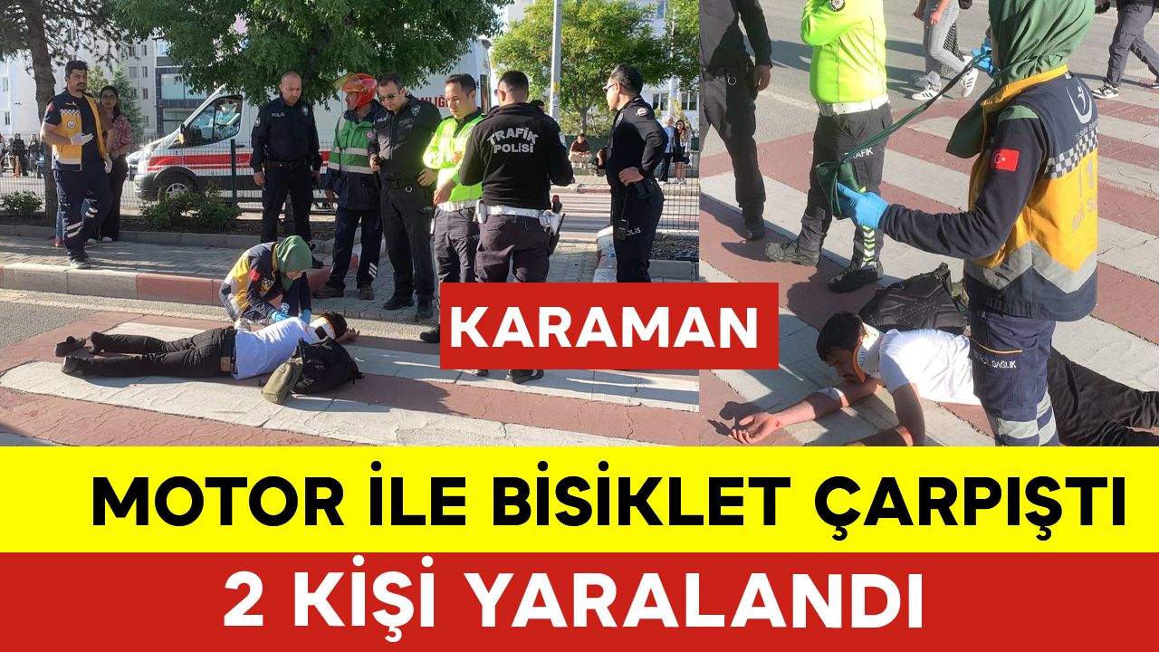 Kaza, İbrahim Öktem Caddesi üzerinde meydana geldi. Edinilen bilgiye göre S.Ö. idaresindeki 70 ES 908 plakalı motosiklet ile sürücüsünün ismi öğrenilemeyen yabancı uyruklu sürücünün idaresindeki bisiklet cadde üzerinde çarpıştı. Çarpışmanın etkisiyle araçlar 16 metre sürüklendi. Kazada motosiklet ve bisiklet sürücüsü yaralandı. İhbar üzerine olay yerine sağlık ve polis ekipleri sevk edildi. Kazada yaralanan yaralılar ambulanslarla Karaman Eğitim ve Araştırma Hastanesi’ne kaldırıldı. Kazayla ilgili inceleme başlatıldı.