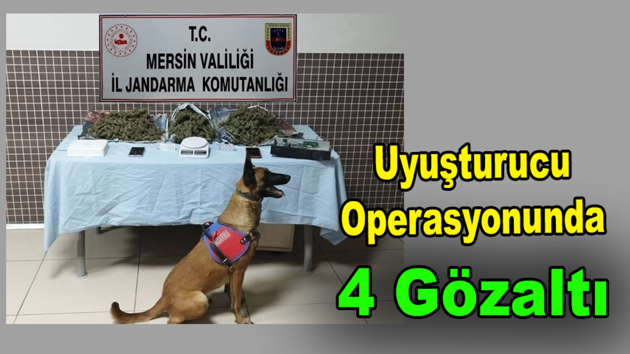 İl Jandarma Komutanlığından yapılan açıklamaya göre, uyuşturucu satıcıların yönelik çalışma yapan ekipler, Akdeniz ve Silifke'de bazı şahısların uyuşturucu sattığını belirledi. Bunun üzerine belirlenen adreslere eş zamanlı operasyon düzenleyen ekipler, 4 şüpheliyi gözaltına alırken, adreslerde yapılan aramalarda 4 kilo 650 gram esrar, 45 gram metamfetamin, 65 uyuşturucu hap, 1 hassas terazi, 1 tabanca ile 3 uyuşturucu madde kullanma aparatı ele geçirildi. Gözaltına alınan şüpheliler, işlemleri yapılmak üzere jandarmaya götürüldü.