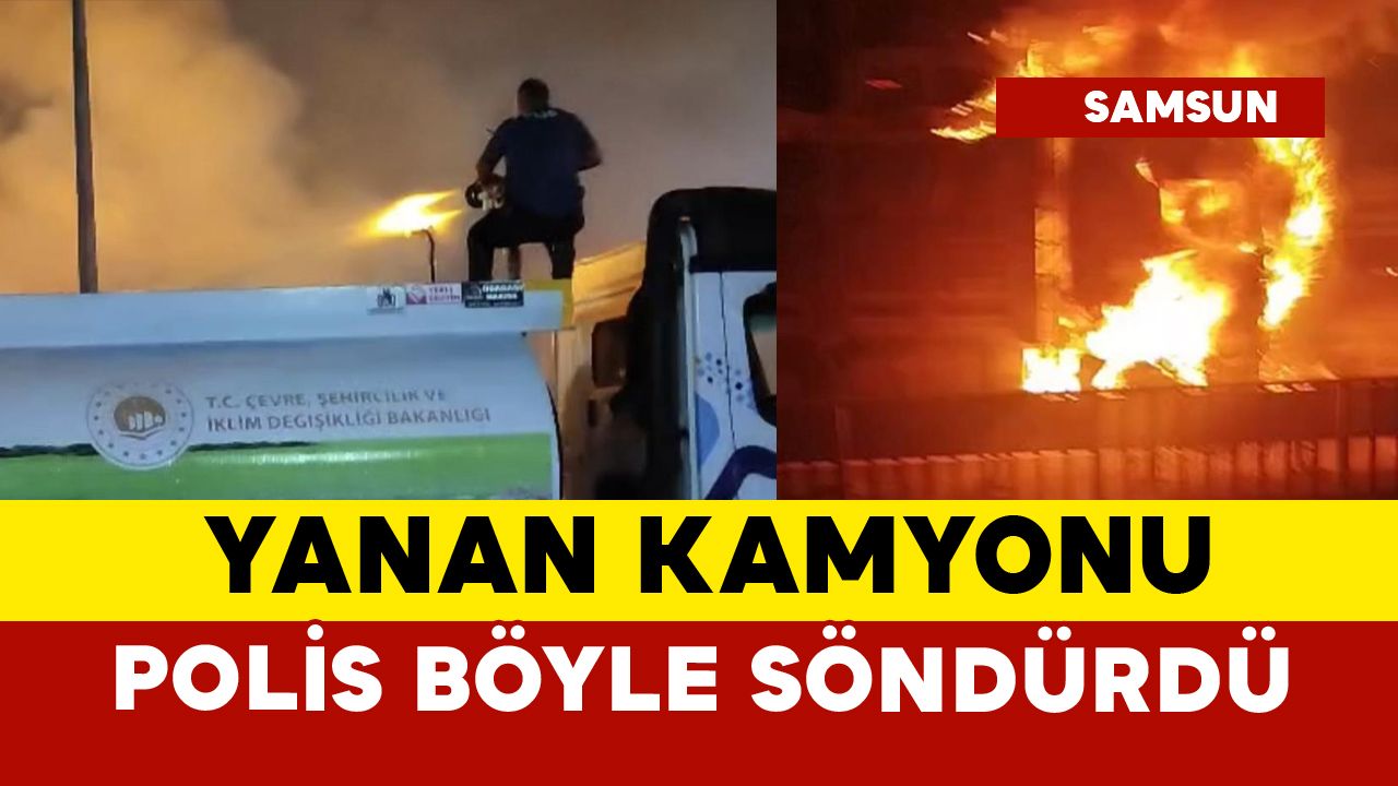 Olay, Tekkeköy ilçesi Kirazlık Mahallesi Atatürk Bulvarı üzerinde dün gece meydana geldi. Edinilen bilgiye göre, Zekai Kavak idaresindeki 05 DC 606 plakalı yem yüklü kamyonun kupa kısmında yangın çıktı. İhbar üzerine olay yerine polis ve itfaiye ekipleri sevk edildi. Alevler kamyonun kupa kısmını sardı. Polis, itfaiye gelene kadar alevlerin kamyonun kasasına sıçramaması için yoldan geçen su tankerini durdurup, tankerden su sıkarak yangını söndürdü. Polisin özverili davranışı vatandaşlar tarafından taktirle karşılandı. Samsun Büyükşehir Belediyesi İtfaiye Daire Başkanlığı ekipleri de kamyonda soğutma çalışması yaptı.