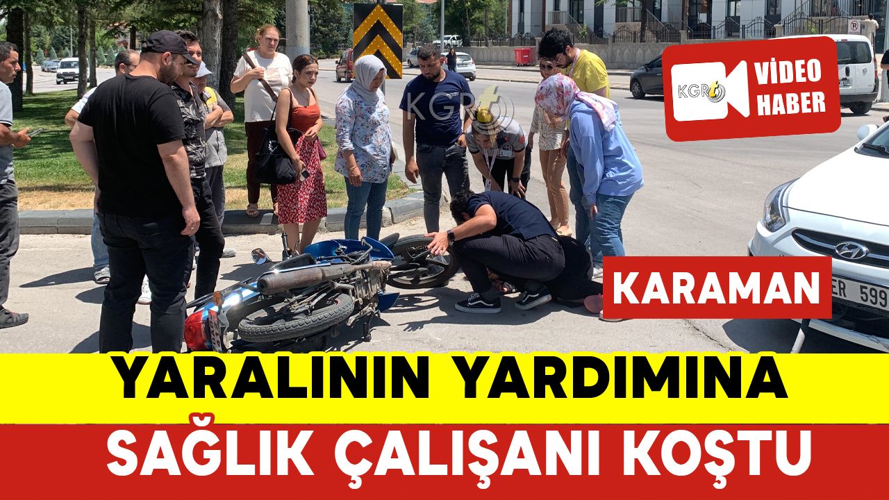 Kaza, öğle saatlerinde Cumhuriyet Mahallesi’nde bulunan 1 Nolu Aile Sağlığı Merkezi yakınlarındaki Tiryaki Hasan Paşa Kavşağı’nda meydana geldi. Edinilen bilgiye göre, S.D. idaresindeki 70 ER 599 plakalı Hyundai marka otomobil ile Z.A.’nın kullandığı 70 ABJ 412 plakalı motosiklet kavşakta çarpıştı. Çarpışmanın etkisiyle motosiklet sürücüsü Z.A. isimli genç kadın yere savruldu. Kazayı gören Aile Sağlığı Merkezi çalışanı hemen yaralının yardımına koştu. Kazanın etkisiyle panikleyen yaralı genç kadını ambulans gelene kadar Aile Sağlığı Merkezi’nde görevli sağlık çalışanı sakinleştirmeye çalıştı. İhbar üzerine olay yerine sağlık ve polis ekibi sevk edildi. Kazada yaralanan genç kadın olay yerine gelen ambulansla Karaman Eğitim ve Araştırma Hastanesi’ne kaldırılarak tedavi altına alındı. Kazayla ilgili tahkikat başlatıldı.