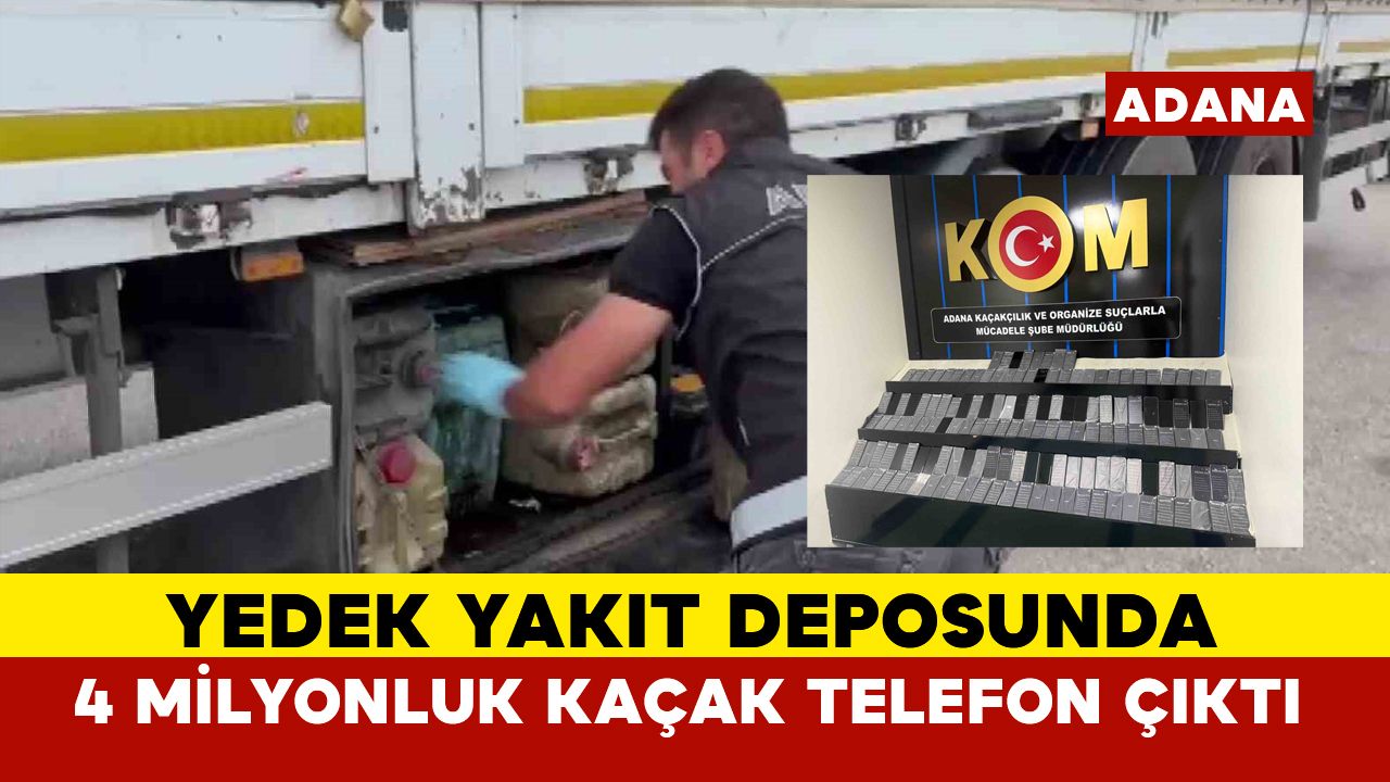 Alınan bilgiye göre, İl Emniyet Müdürlüğü Kaçakçılık ve Organize Suçlarla Mücadele Şubesi ekipleri, Mersin-Tarsus-Gaziantep-Adana (TAG) otoyolunda bir tırı durduru. Tırda gümrük kaçağı olduğu bilgisine ulaşan polis, aracı aramaya başladı. Yapılan arama çalışmasında yedek yakıt bidonunun içerisine zulalanmış 149 adet gümrük kaçağı cep telefonu ele geçirildi. Telefonların piyasa değerinin 4 milyon 470 bin TL olduğu öğrenildi.