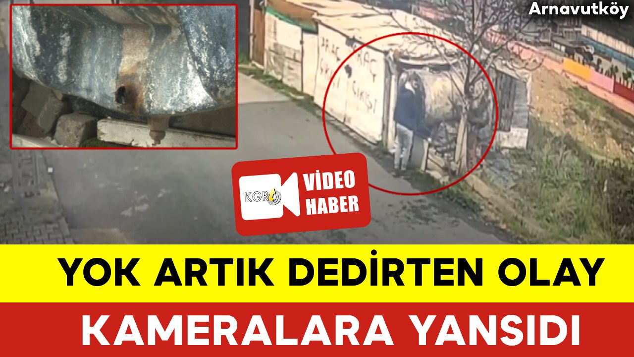 Arnavutköy’de dün öğle saatlerinde meydana gelen olayda edinilen bilgiye göre, Arnavutköy Nenehatun Mahallesi’nde bulunan bir sokakta yürüyen 2 kişi yol kenarına bırakılan su tankerini gözlerine kestirdi. Şahıslardan biri tankerin vanasına tekme atarak kırdı. Kırılan vanayı alan şahıslar hızla sokaktan uzaklaştı. İlginç hırsızlık güvenlik kamerası tarafından kaydedildi. Görüntülerde vanayı tekmeleyerek kırdıktan sonra şahısların çaldığı ve dakikalarca suyun boşa aktığı görüldü. Mahallede yaşayan bir vatandaş da duruma, “Burada yoldan geçenler tekme vurarak kırmışlar. Bu parkta duran gençler kendilerine bir kulübe yapmışlar. Tenhada olduğu için park hep buraya birikiyorlar, geceleri de ateş falan yakarak rahatsızlık veriyorlar, komşumun da su saatini kırmışlar. Kamera olduğunu fark etmemişler, çalmışlar sanırım” şeklinde konuştu.