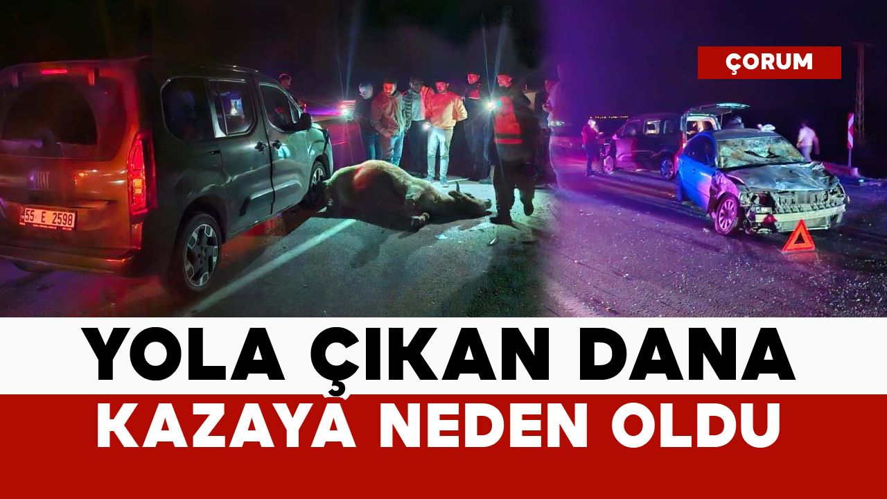 Kaza, Yozgat-Alaca karayolu Çatalkaya köyü yakınlarında meydana geldi. Edinilen bilgiye göre, H.Ö.Ö. (20) yönetimindeki otomobil aniden önüne çıkan danaya çarparak durdu. Bu sırada aynı istikamette ilerleyen Osman K.Y. idaresindeki hafif ticari araç, otomobile arkadan çarptı. Kazada sürücü H.Ö.Ö. ile hafif ticari araçta bulunan yolcular A.Y. (54) ve D.A.Y. (19) yaralandı.